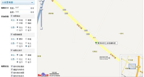2.設(shè)置地圖,一般這里選用的默認值寬度是697,高度是550,一般不用調(diào)整,按這個默認值就可以了,但如果是自己網(wǎng)站頁面需要可以適當?shù)恼{(diào)整下寬度和高度。